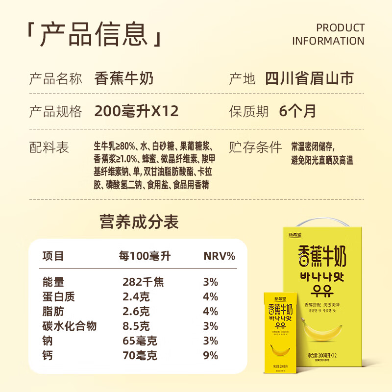 华西新希望风味香蕉牛奶200mlx12盒整箱 – 实惠价39.9元