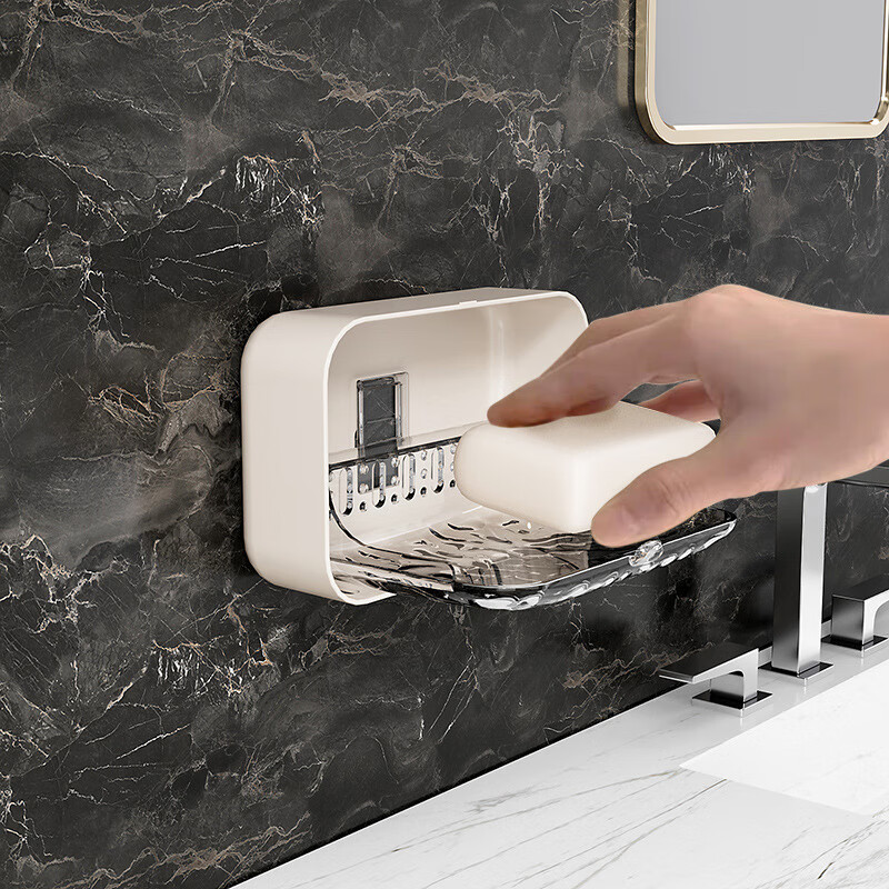 听见时光肥皂盒壁挂式香皂盒免打孔浴室卫生间可拆卸沥水香皂置物架双格,现特惠价格仅为22.9元!