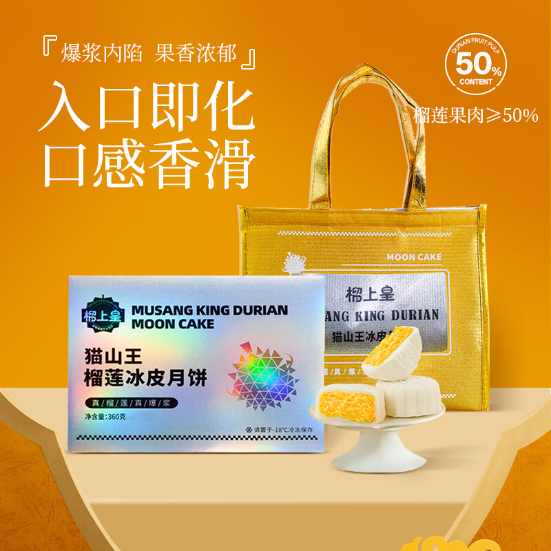购买此款猫山王榴莲冰皮月饼,以优惠的价格享受高品质的美味。赶快行动吧!