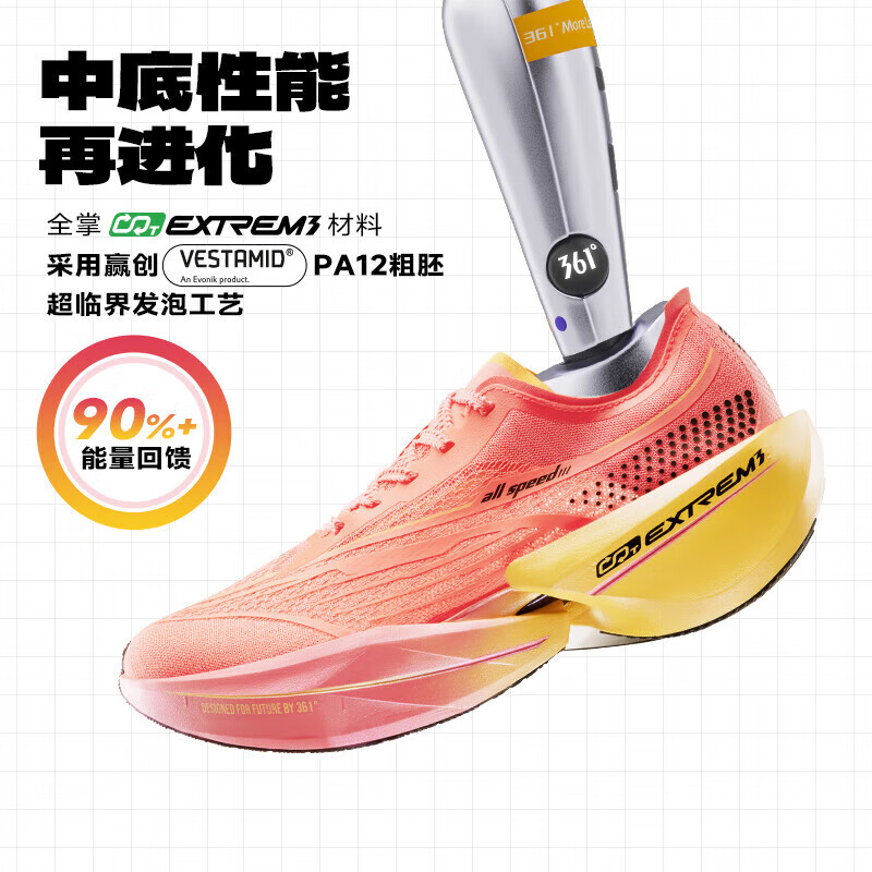 **361° 运动鞋男鞋飞飚 future1.5 系列专为马拉松与竞速跑者打造,其卓越性能深受运动爱好者的青睐。现在,这款专业级跑步鞋只需¥1299就能带回家!此款运动鞋在设计上融入了多项创新技术:轻质透气的材质、稳定的支撑结构以及强大的抓地力,让您在长距离奔跑中依旧保持最佳状态。