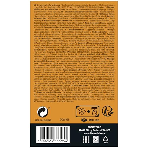 Experience the convenience and versatility of BIC whiteboard markers with this multicolor pack. Ideal for any classroom or office setting, these markers offer excellent value and performance.