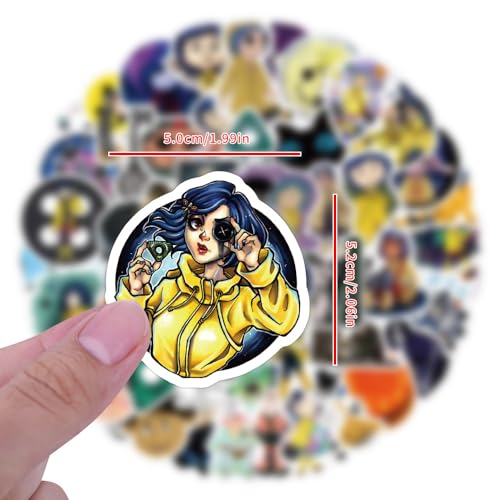 Discover Coraline & the Secret Door‘s collection of 50 unique film stickers, perfect for enhancing your personal items with a touch of fantasy. These stickers are made from high-quality PVC material and feature vibrant designs that won’t peel off easily.