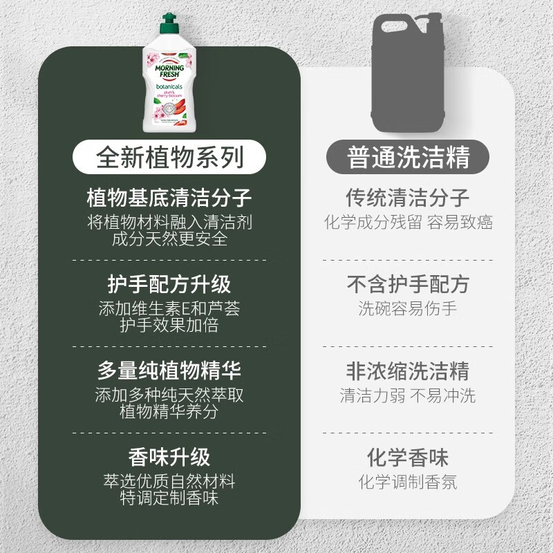除了优秀的清洁能力,morning fresh 超浓缩洗洁精还具备温和不伤手的特点。400ml 的大容量包装更加实用,适合家庭日常使用。此外,它的香味清新自然,在清洗过程中带来愉悦的体验。