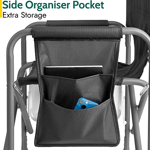 • Side Table Included: Comes with a folding table featuring cup holders and storage pockets for added convenience.