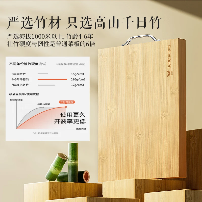 购买此款双枪银标整竹无屑砧板,立即开启健康、美味的厨房生活!