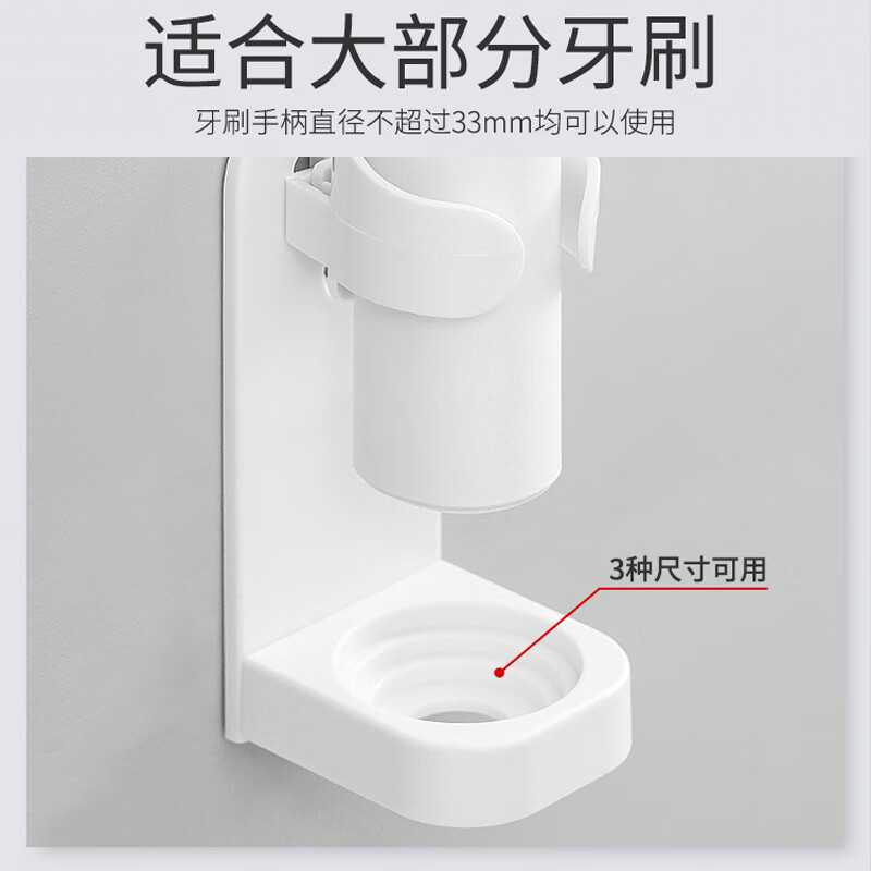 洁比世电动牙刷架采用壁挂式设计,不占用地面空间,易于清理;免打孔安装方式避免了墙面的损伤。