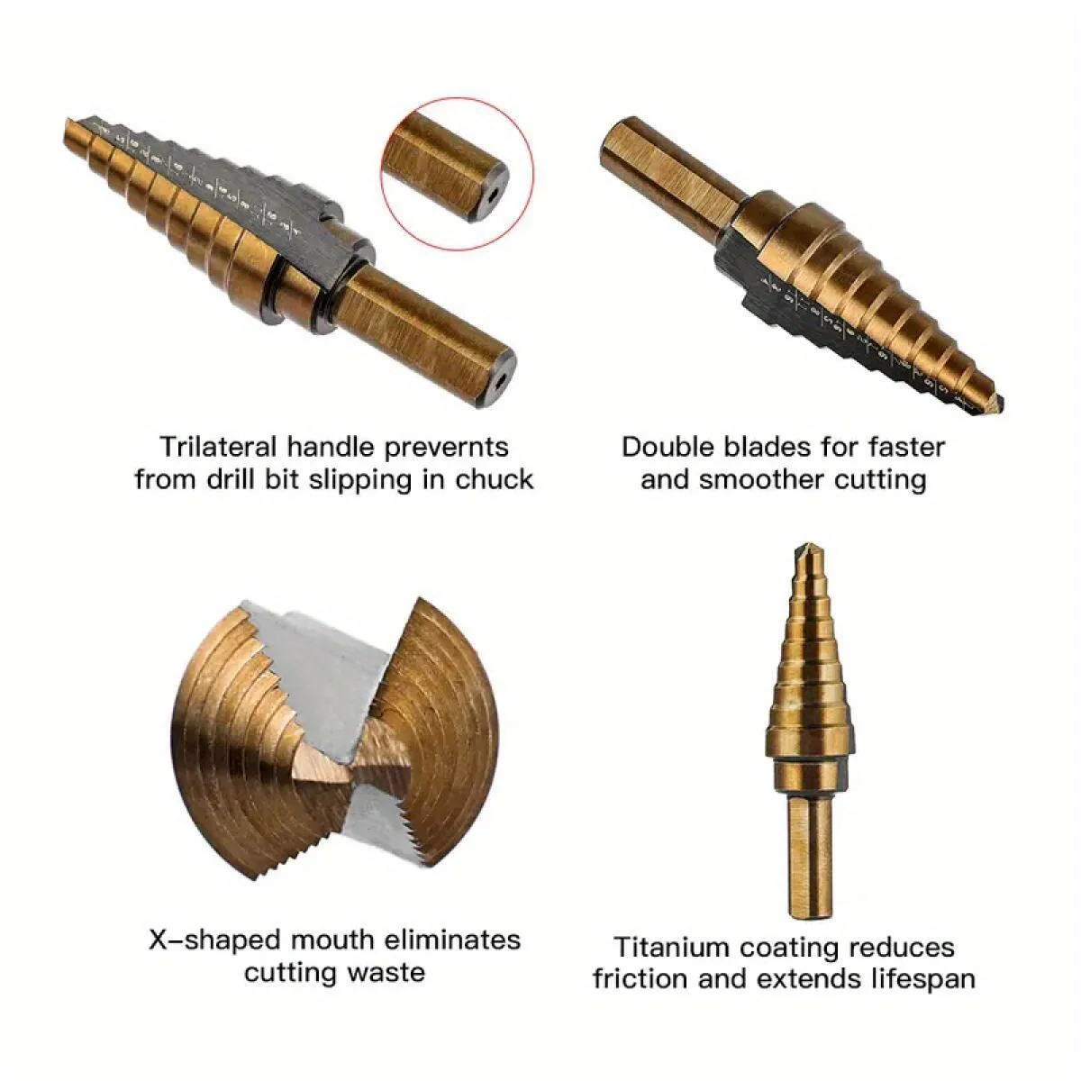 Using your new HSS Cobalt stepped drill bit kit is a breeze. Simply select the appropriate size bit for your project, attach it to your power drill, and start drilling through various materials with ease. The conical shape ensures accurate placement every time.