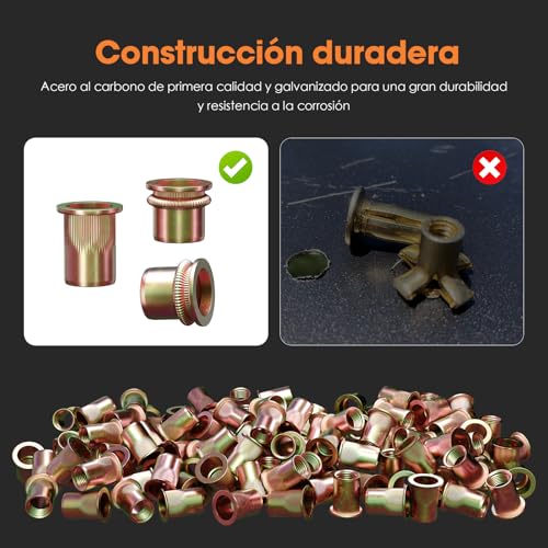• Easy Installation: Simply insert into pre-drilled holes and use a manual, pneumatic, or electric setting tool to compress and secure the inserts.