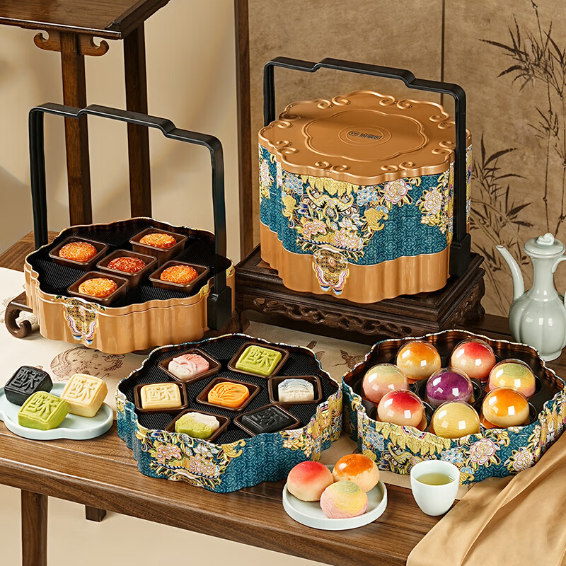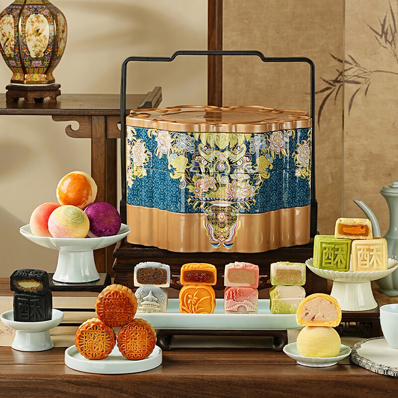 悠享时(YOTIME)高档三层中秋节月饼礼盒,为您献上一款精致的中秋佳节美食。这款月饼礼盒包含火腿黑松露月饼、蛋黄酥糕点等经典口味,总重量达1234克,无论自用还是送人都再合适不过。