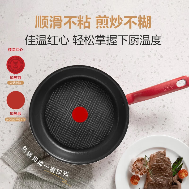 特福平底锅采用先进的不粘技术,无论是煎牛排、烙饼还是烹饪其他食材都能轻松应对。其简洁大气的外观设计,不仅在厨房中独树一帜,而且清洗也非常方便。