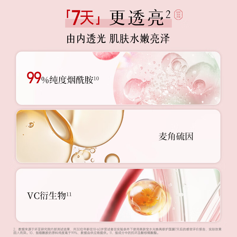 这款美肤宝水光焕亮修护面膜富含烟酰胺成分,能够为肌肤提供深层的保湿与舒缓效果。每次使用后,你的皮肤将更加光泽、平滑且富有弹性。