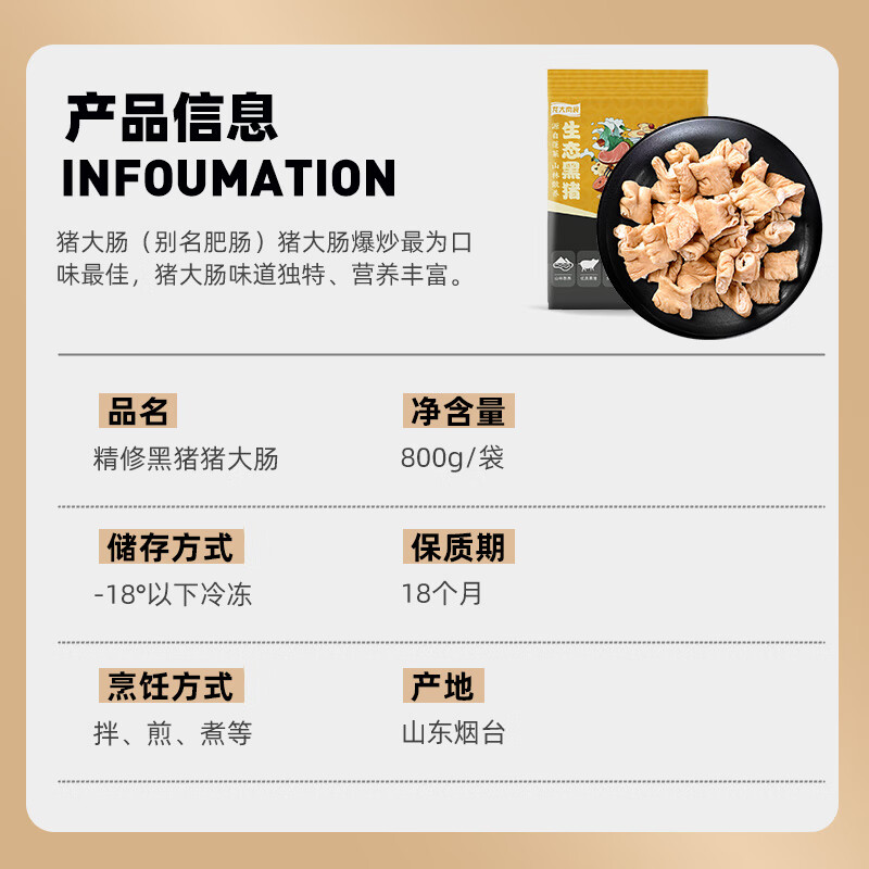 龙大肉食 黑猪大肠段800g,来自蓬莱生态黑猪肉的顶级享受。