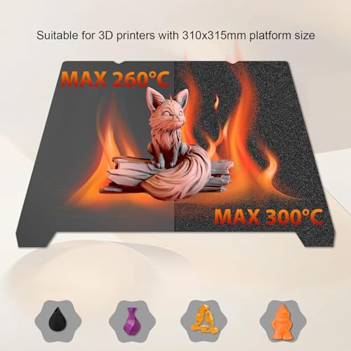 This build plate is ideal for both beginners and experienced users who want a reliable, durable surface that can handle high temperatures and different printing materials without compromising on adhesion or ease of use. Suitable for those using 3D printers with specific platform sizes (up to 310×315 mm).
