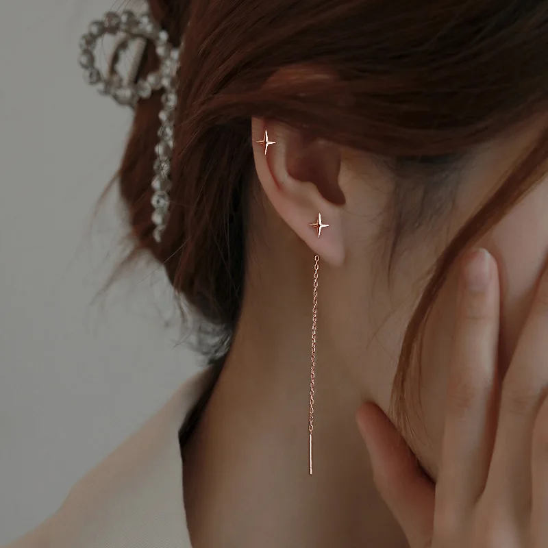 Experience elegance with the JWER S925 Silver Needle Star Line Earring for Women. This stunning piece features intricate needle star line designs that are perfect for adding a touch of sophistication to any outfit. With its tassel drop earring design and long chain beads, this asymmetry ear jewelry offers both style and versatility.