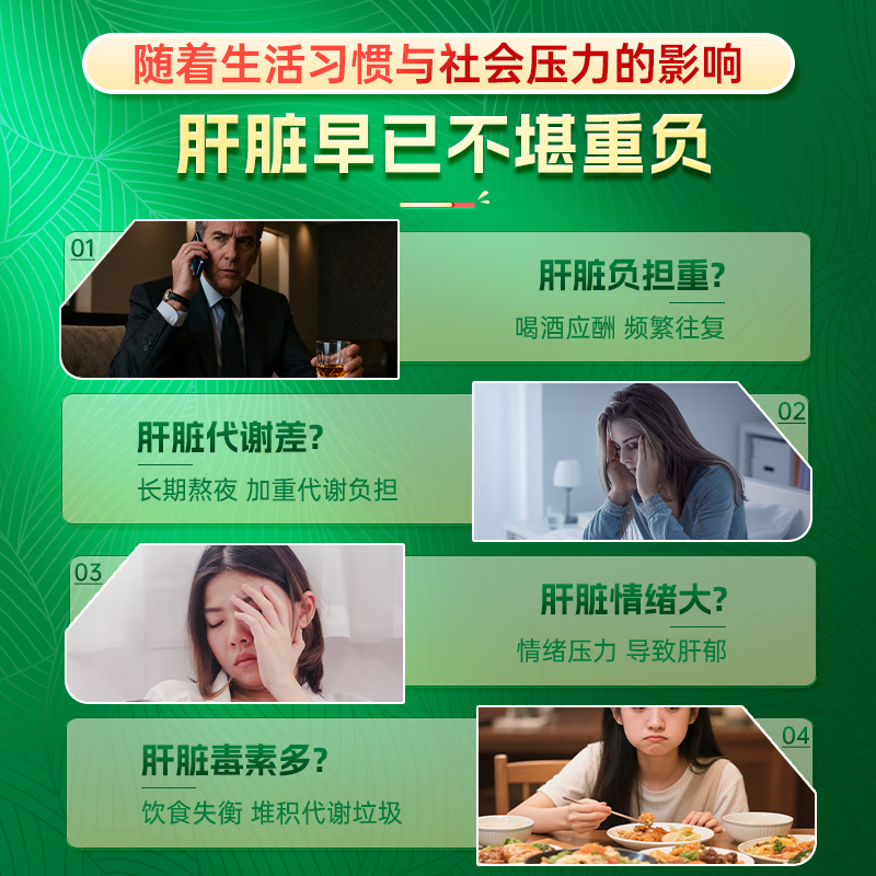 - 滋养肝脏:精选优质药材,帮助养肝护肝,改善因过度劳累引发的不适感。