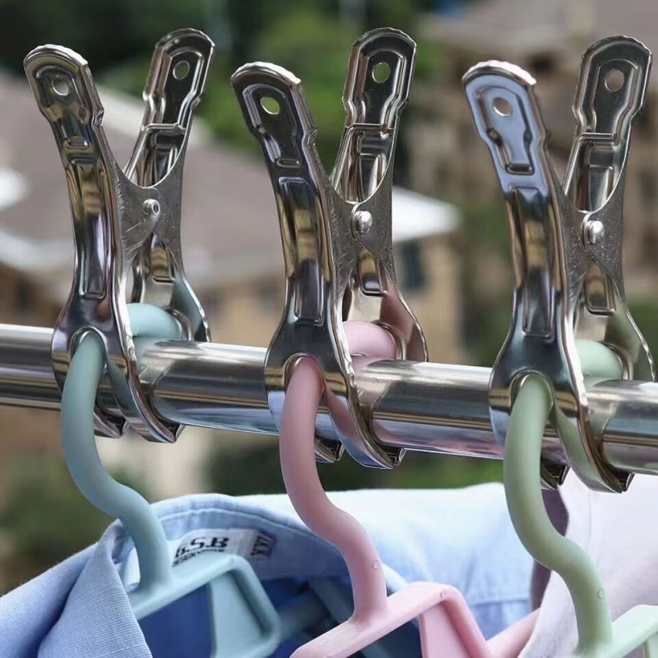 大夹子强力防风夹晾衣夹,采用不锈钢材质打造,坚固耐用且具备出色的抗腐蚀性。特别适合在户外或阳台晒衣服时使用的大号开口防风夹(11cm),8个装,可以一次性满足您的家庭需求。