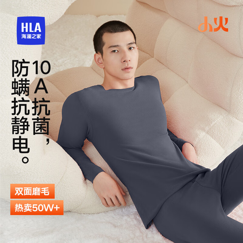 海澜之家【小火-3分火】保暖内衣男士新品双面绒抗菌薄秋衣秋裤套装,现仅需109元。高评价率、优惠价限时供应中。