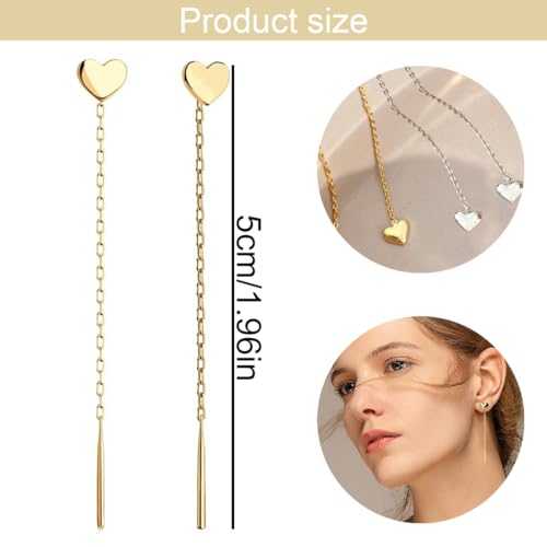 - Elegant Design: Receive 2 pairs of heart-shaped earrings with long chains in gold and silver for an impressive romantic look