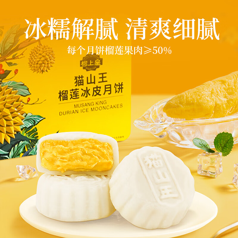 榴上皇猫山王榴莲冰皮月饼,限时优惠仅售149元。猫山王内馅,中秋送礼佳品,好评率高达96%,快来抢购吧!