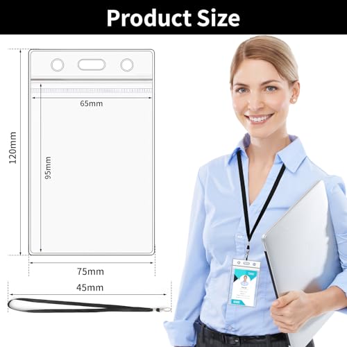 Apritsce’s hanging ID card case is a must-have accessory for anyone needing to carry identification cards securely and stylishly. This package includes 50 high-quality, transparent card holders along with matching cords.