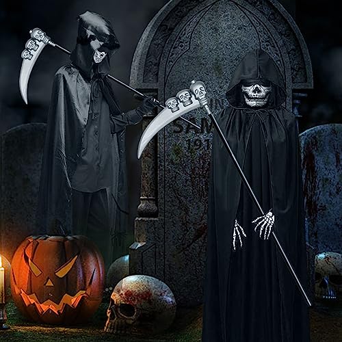 - Complete Set: Includes cloak, mask, skeleton gloves, and scythe – everything you need for a complete Grim Reaper outfit.