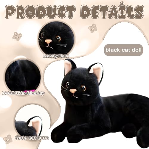 GVMJHYK Black Cat Plush Toy – Realistic Animal Figure