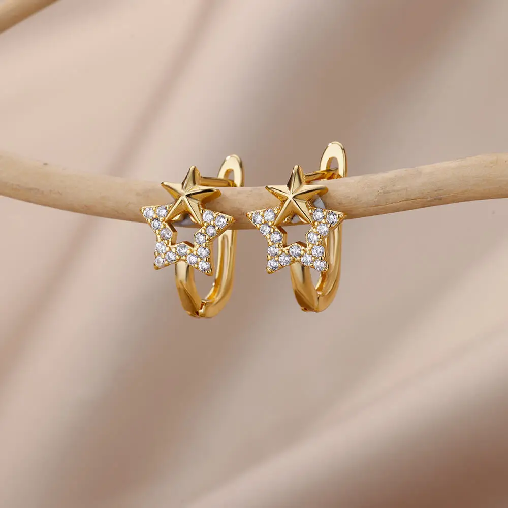 We are excited to introduce the Mini Zircon Star Hoop Earrings For Women, a stunning piece of jewelry that combines elegance and modern fashion. Crafted from high-quality gold plated stainless steel, these earrings offer durability while keeping you stylish at an unbeatable price.