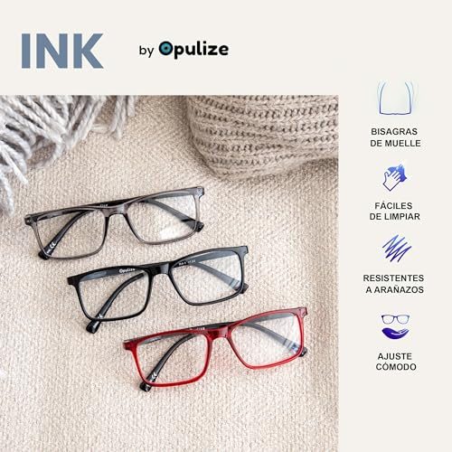 OPULIZE Ink Pack 2 Large Reading Glasses are designed for individuals seeking a stylish yet functional solution to their vision needs, featuring robust rectangular frames with coil hinges and easy-to-clean lenses.