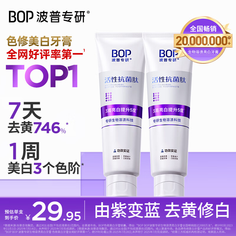 波普专研迪丽热巴同款牙膏 紫色亮白99.8元波普专研迪丽热巴同款色修美白牙膏,现仅售 99.8 元。快速去除牙齿污渍、亮白美化笑容,好评如潮! buy2025年10月7日京东优选 产品详情 **波普专研(bop)迪丽热巴同款色修美白牙膏,紫色亮眼设计,独特配方去渍亮白牙齿。这款牙膏不仅帮助您迅速清除口腔内的污垢和色素沉积,还具有优秀的护龈效果,令您的笑容更加灿烂动人! 拥有超过 50,000 条好评,这款牙膏备受用户喜爱。现仅售 99.8 元,为您带来前所未有的口腔护理体验。 产品详情 Share this content: 标签# 个护美妆# 好物推荐# 热销产品 buy 文章: 33954 上一页 文章 邬辣妈麻辣豆卷200g,仅售12.9元! 下一页 文章 张小泉 不锈钢折叠剪刀,仅售12元!