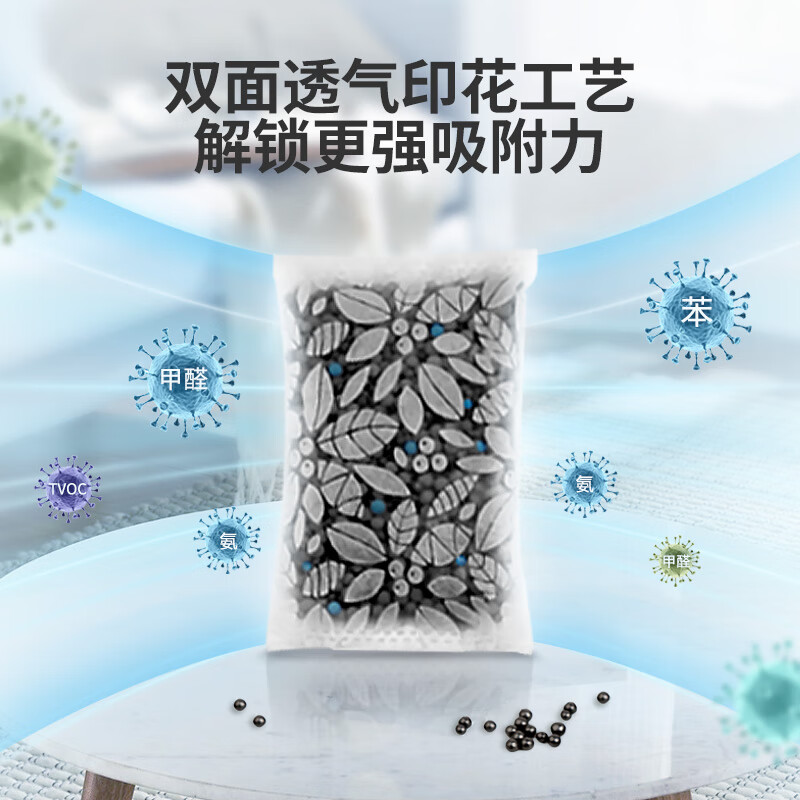 - 使用天然竹碳材质,健康环保无毒害。经过专业检测,有效去除室内污染气体和有害物质。