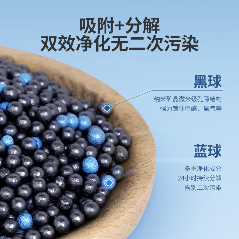 - 重量轻便携带方便,速净兀魔球活性炭,强力吸附甲醛、异味。