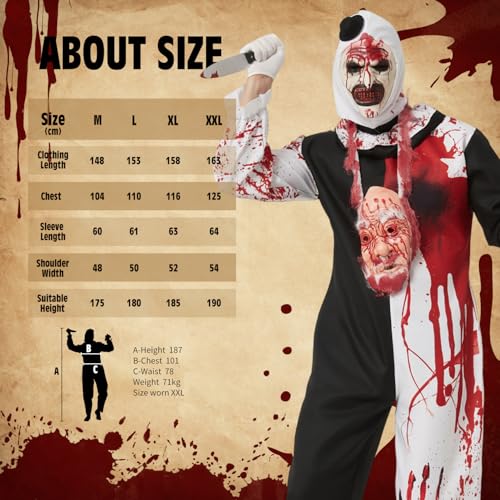 This costume is ideal for horror enthusiasts, Halloween fans, cosplay participants, and anyone who wants an authentic Terrifier experience this season.