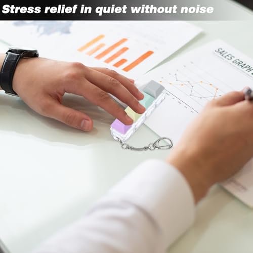 Relieve stress and anxiety with the Mabor Fidget Clicker Stress Relief Keychain, a versatile tool designed to provide tactile comfort and relaxation. This compact and stylish keychain features 4 different colored buttons that are easy on your fingers.
