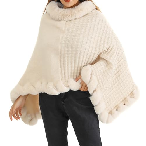 The Women Knitted Faux Fur Cape is a chic and versatile piece that offers both warmth and style during colder months. Perfectly suited for women who are fashion-conscious and looking to stay cozy in the coldest seasons.