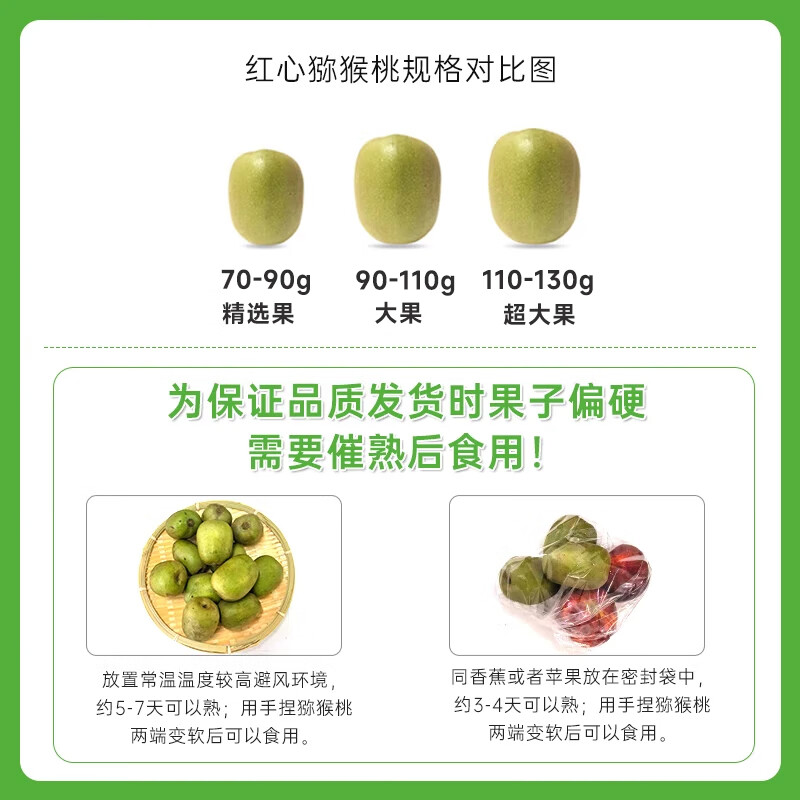 京鲜生 四川红心猕猴桃,超大果装,中秋特供!每箱精选12颗,单个重量约在110-130克之间。