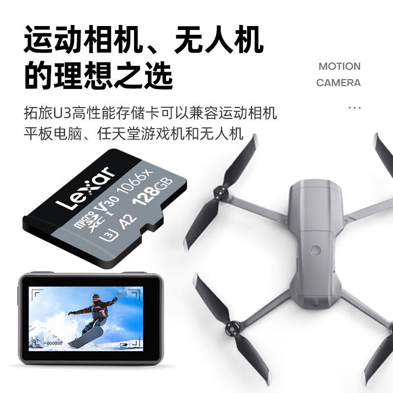 大疆运动相机专用内存卡,专为Pocket3口袋相机、大疆OsmoNANO/360/Action4/5pro及影石360等设备设计。它提供高达128GB的存储空间和惊人的100MB/s读取速度,足以满足高速连拍摄影与4K视频录制的需求。