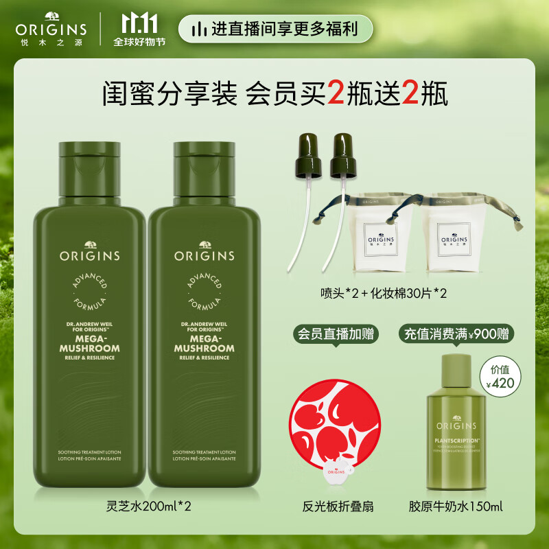悦木之源(Origins)灵芝菌菇水200ml*2保湿爽肤水湿敷补水喷雾礼盒不仅是日常护理的理想选择,更是送给爱人的完美礼物。它包含了足够的量让您在享受护肤的同时也能够将关爱传递给心爱的人。