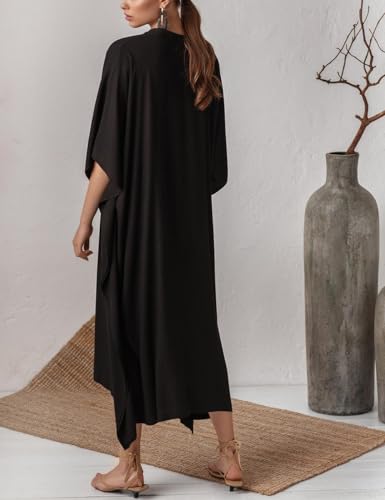 The Bsubseach Women’s Black Silk Kaftan Dress is designed to elevate your summer wardrobe with its versatile and stylish design. Whether you’re lounging by the pool or heading out for a casual dinner, this dress ensures you look stunning.