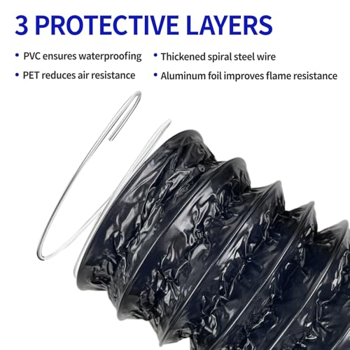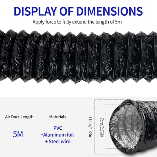 • Wide Applications: Perfect replacement for damaged or old ducts in range hood, portable air conditioner, or dryer. Provides efficient circulation and air supply in kitchens, greenhouses, bathrooms, and more.