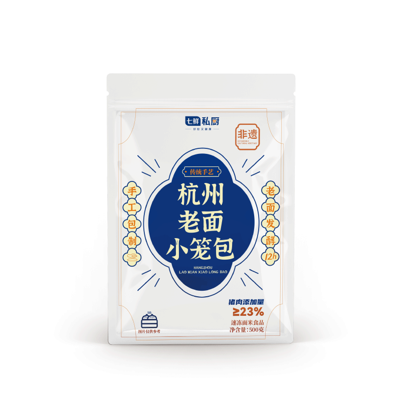 七鲜私厨 杭州老面小笼包 500g 约20只,早餐半成品食品包子早点