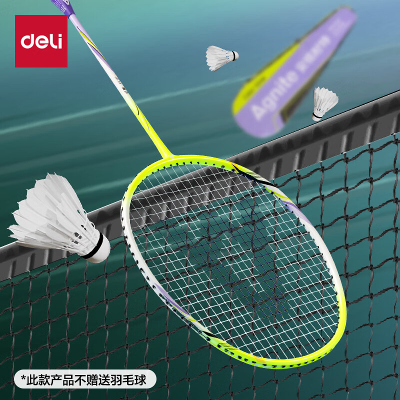 得力与安格耐特的联合设计青少年碳纤维渐变光雾系列一体训练韧打半碳羽毛球拍。