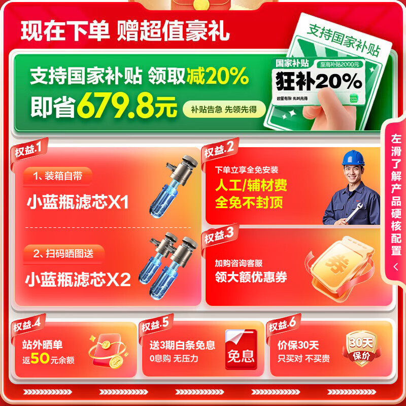 海尔麦浪套系电热水器 3999元特惠海尔麦浪套系电热水器,国家补贴20%,现优惠价仅售3999元。速热功能与富锶小蓝瓶净肤洗,获得五万用户好评推荐 buy2025年10月9日京东优选 产品详情 海尔麦浪套系电热水器 国家补贴20%、7天无理由退货,官方自营!现优惠价仅售 3999 元。海尔这款80升的电热水器以其卓越的安全性能和强劲的加热速度获得了消费者的广泛好评,双胆设计以及一级能效,确保了使用中节能又便捷。 该电热水器具有富锶小蓝瓶净肤洗、锆金全瓷技术,速热功能使得使用更加便捷,同时保证了良好的水质和皮肤健康。99%好评率,五万用户推荐。 产品详情 Share this content: 标签# 好物推荐# 数码家电# 热销产品 buy 文章: 34955 上一页 文章 SHIMANO Sora 50D Chainrings for Bicycles - Multicolor 下一页 文章 DSTE BP-511 Li-Ion Battery for Canon - Portable and Durable