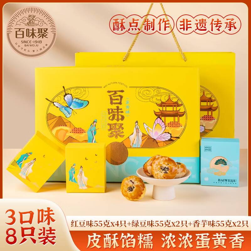 - 浙江老字号品质保证:传承非遗工艺的百味聚,确保每一份月饼都是匠心之作。