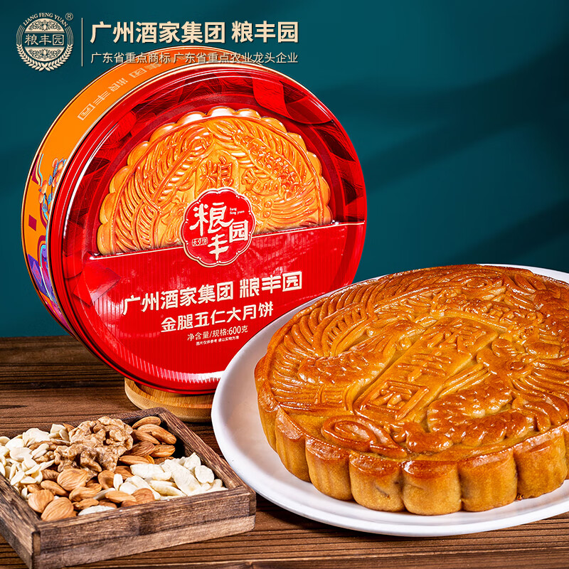 中秋佳节之际,我们为您带来经典美味——粮丰园广州酒家集团的金腿五仁大月饼礼盒。这款广式月饼不仅以其独特的传统口味备受青睐,更是中秋送礼的上佳之选。