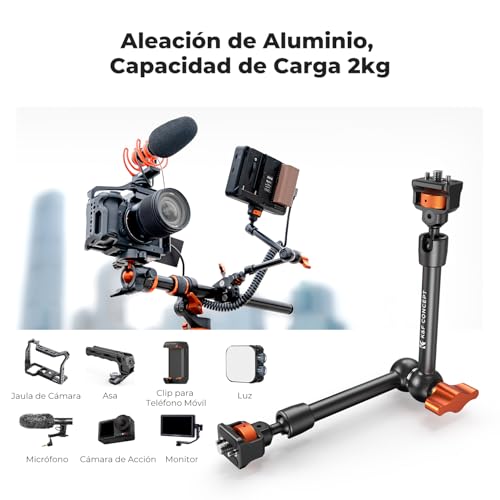 The K&F CONCEPT Magic Arm with Super Clamp is a portable camera mount that offers versatile mounting options for cameras and accessories. Its lightweight and compact design makes it easy to carry around and set up.