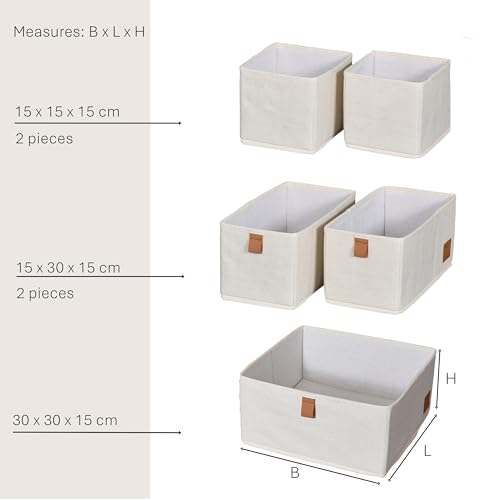 - Practical Organization System: The storage basket set includes five fabric boxes of different sizes, perfect for organizing drawers and closets.