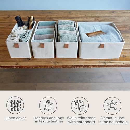- High-Quality Materials: Made with a cotton-linen blend on the outside and white cotton inside. Reinforced cardboard walls and bottom provide durability.