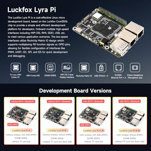 The LUCKFOX Lyra Pi B W Micro Development Board is ideal for developers, engineers, and hobbyists working on IoT projects, embedded systems development, robotics, smart transportation, industrial automation, and other professional applications requiring a powerful yet flexible SBC platform.