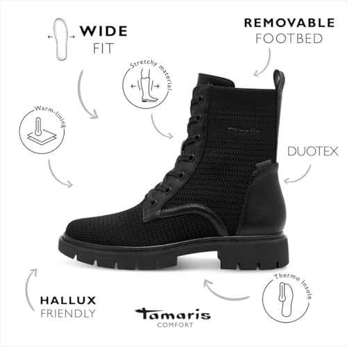 Tamaris Comfort Lace Boot Flat Warminsole+Tex offers a unique blend of style and comfort, designed to meet your needs while keeping up with fashion trends. This versatile boot is perfect for daily use or more elegant occasions.