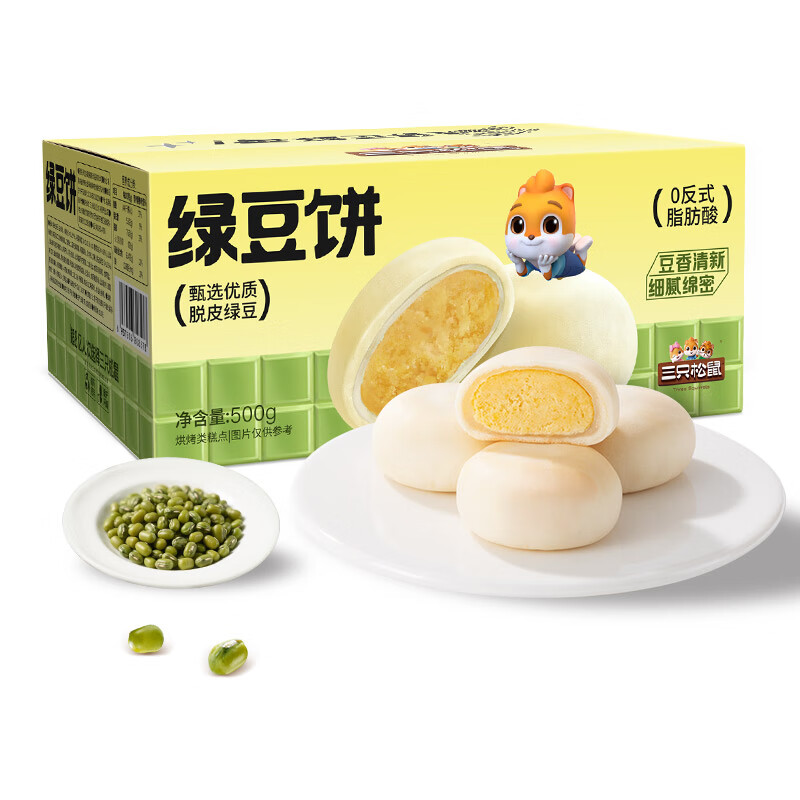 三只松鼠绿豆饼500g,优惠价仅需19.9元!香甜软糯、经典美味。